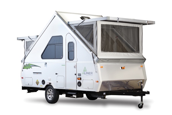The Expedition is ready to handle any adventure. Aliner’s largest model, the Expedition offers 30% more storage room, taller counter tops, taller beds, flush mount euro style sink and stove, and the company’s highest capacity chassis, while still weighing less than 2,000 lbs. dry. At 18’ in length, the Expedition has a GVWR of 3,000 lbs. and a hitch weight of just 240 lbs. offering three floor plans: a sofa bed, rear twin bed or rear mattress layout. Outside shower, two smoked skylights with shade, 3.0 cu. ft. fridge and two burner flush mount stove all standard. Options include a grill, awning, 5,000 BTU A/C, high wind kit, bike rack, toilet and power lift.