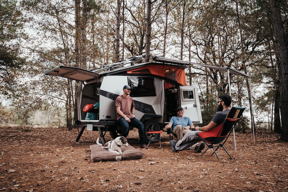 The lightweight, rugged 2021 Cricket Overland with increased 14.5” ground clearance lets you travel further down a dirt road. This NASA-inspired habitat fits two adults and two kids, and features integrated plumbing and electrical systems, additional storage, and a redesigned improved kitchen for comfortable trips off-grid. The Cricket Overland edition comes standard with THULE® Adjustable Roof Load Bars, two kids berths, Soft Goods Package (Awning, Entry Screen Door, Shower Tent) and a portable toilet. The Habitat also features Timbren Axle-Less 3,500 lbs Suspension with 4” Lift, a Lock ‘N’ Roll Hitch, and Alloy Wheel + Cooper Discoverer AT3 LT 225/75R16 Tires.